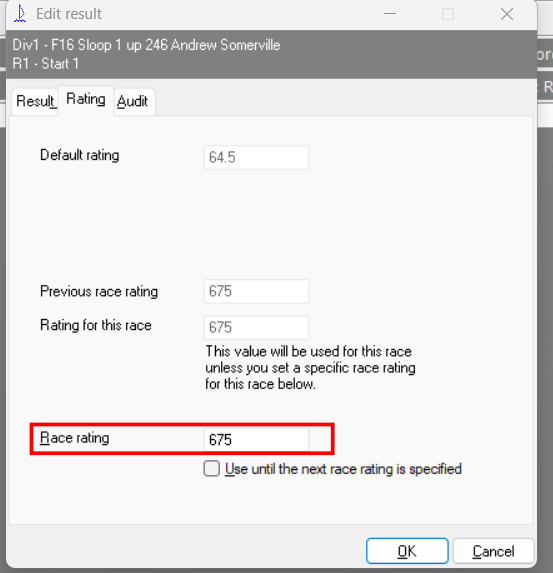 I did click on the place in the R1 column, and the Race Rating was 675 as you showed, but it showed 67.5 in the AS column, which I assumed would be used, but under AS in the published results it showed 675.