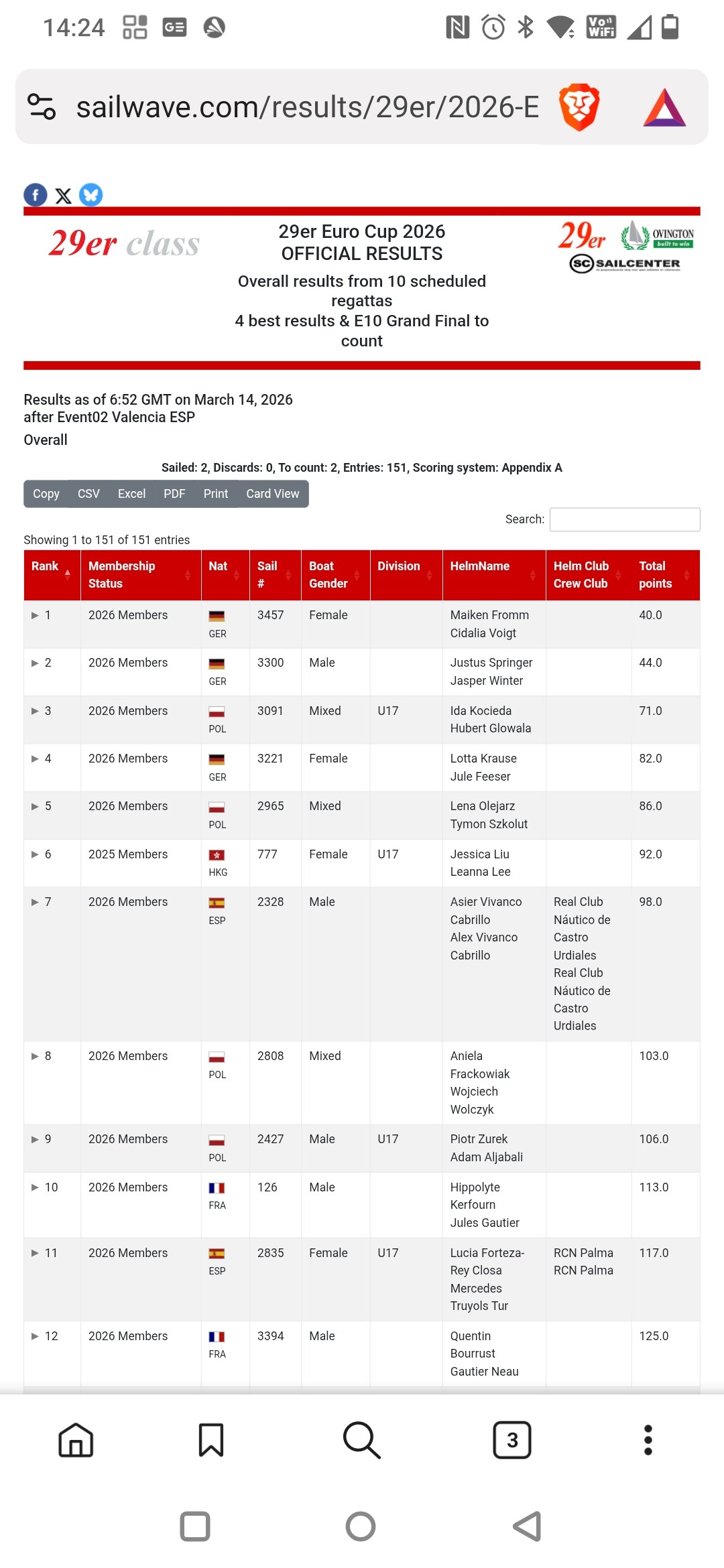 I have been working on an adaptive presentation of Sailwave results which can be seen at Sailwave results for 29er World Championships 2024 at Aarhus,Denmark<br>1st to 9th August 2024.